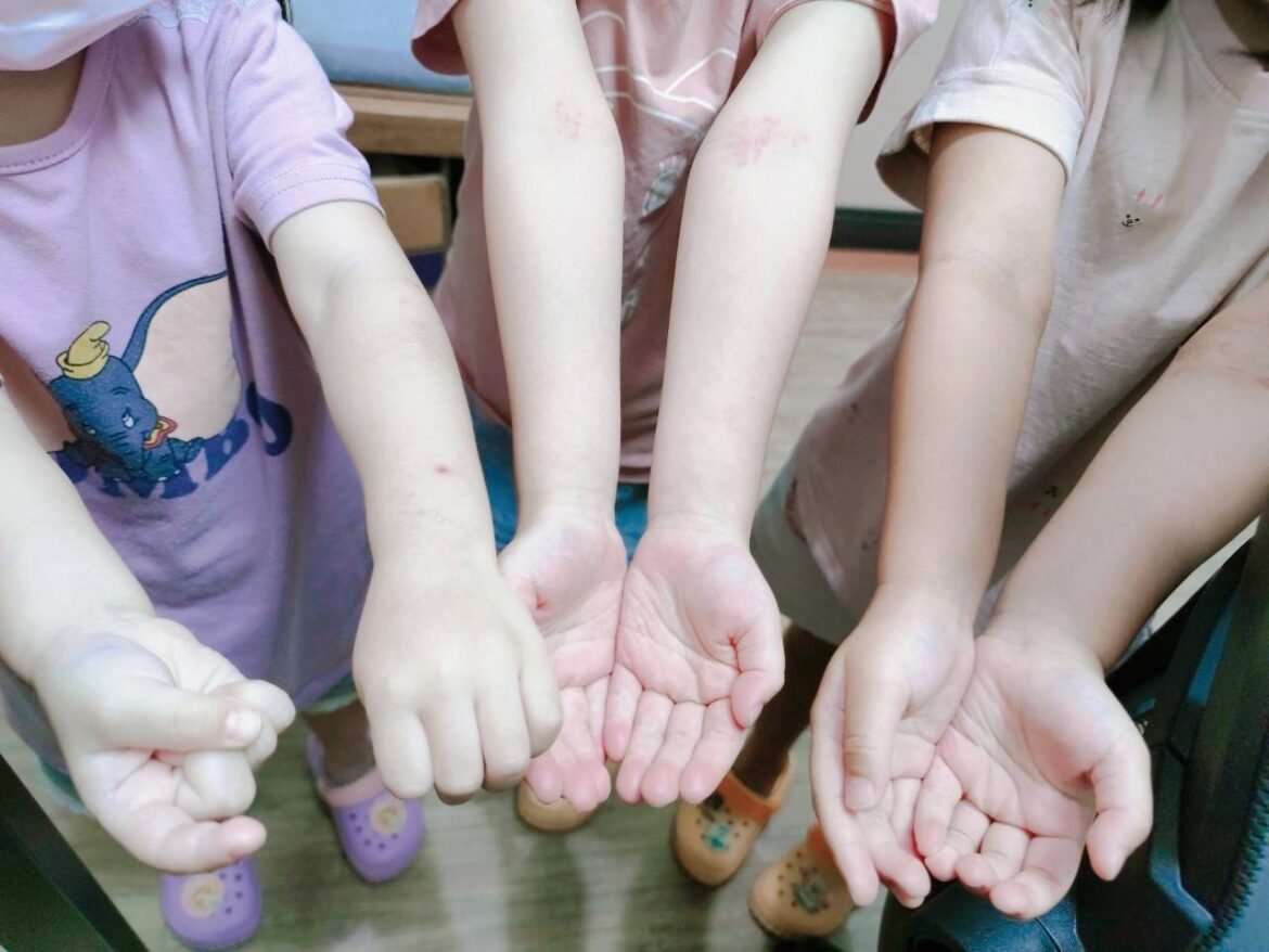 假日的診間一早就熱鬧起來,三位小姊妹異口同聲、舉起手臂👆,手上紅紅腫腫的痕跡讓人看了又心疼又想笑🥲🐜旁邊還站著無奈的爸媽。